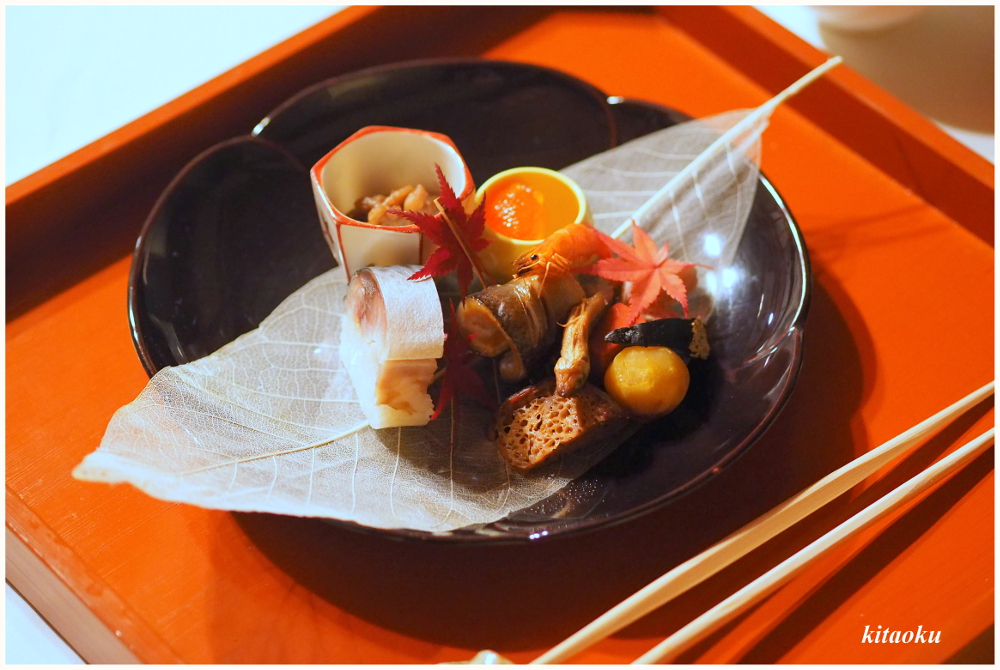 秋の京都を終日案内したあと洛東の白沙村荘でご覧のお料理をいただきました。まさに至福の時、若い女性ならまずスマホなどで撮影してからお箸をつけるでしょう。