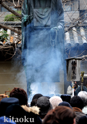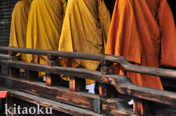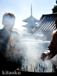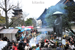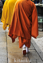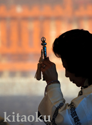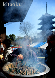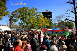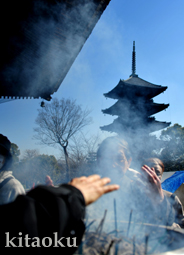 | ”縁日”とは神仏がこの世と”縁”を持つ日とされており、この日に参詣すると大きな功得があるということです。東寺では祖師空海入寂の3月21日を期して毎月21日に御影堂で行われる御影供のことを指しています。当初は年に1回行われていたものが、1239年以降は毎月行われるようになりました |
