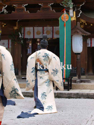 「東遊」は舞を伴うところから「東舞」「駿河舞」ともいわれ、神事舞の中でも代表的なものとされている。もとは東国で行われたものが、外来の楽の隆盛と共に奈良の都に伝えられた。一時衰退の傾向にあったが貞観三年(861)東大寺大仏供養の時に行われてより東国特異の曲節を持った東遊の歌舞は再び好尚に上り、その後東国の民間歌舞が平安の都の祭祀用の歌舞へと転じていった。 |