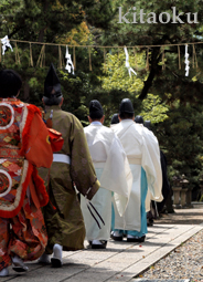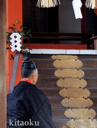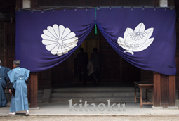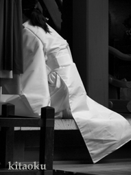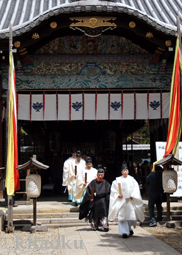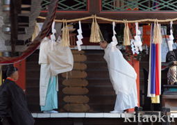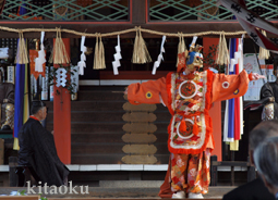 同社の祭神である神功皇后の命日にちなみ4月17日に行われ、本殿前の特設舞台で舞楽などが奉納されます。