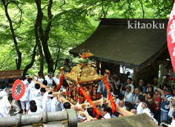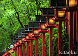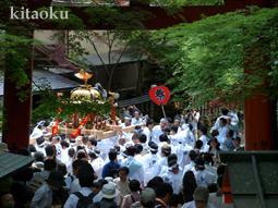 明治維新以前に旧暦4月1日と11月1日の年2回行われていた御更衣祭に起源し、往古には、この両祭に勅使御差遣の儀があり御神衣を献進されたが、中古より賀茂別雷神社[京都の上賀茂神社]の摂社となり、祭祀もまた同社神職によって奉仕されてきた。明治4年太政官達をもって当宮の社格は官幣中社となり、6月1日を例祭日として貴船祭がおこなわれている。午前中は本宮での神事、午後から御神輿が本宮から奥宮まで貴船町内を練り歩く。奥宮では子供たちが健やかな成長を願い神石「船形石」に千度詣りを行い、その後、招福餅まきや、ヤマタノオロチ退治神話を再現した出雲神楽が奉納される |