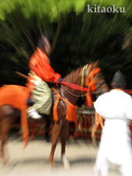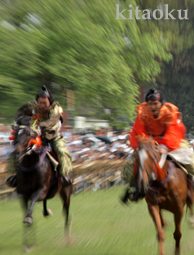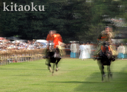 日本に古くから伝わる競馬(くらべうま)は,1300年前にまでさかのぼり、元来宮中で行われていた競馬とは5月5日端午の節供に天皇の下で 走馬を行うことを言う。1回のレースは左右2頭,10番20人で行われる。賀茂競馬は,官人だけでなく神社の氏人が乗尻(馬の乗り手)を務めていたこと,神社周辺に競馬 料として多数の荘園を安堵されていたこと,幕府や有力者の信仰が篤かったことなどにより,古式競馬の伝統が長く守り伝えられてきた.明治維新後,国家政策 により神社に代々奉仕してきた社家が神社から追放されたり,古来から続く祭礼を改廃されたりするなど,古来の伝統の多くを失う憂き目にあった.しかし,そ のなかでも競馬は旧社家によって伝承され現在も変わらず奉仕が続けられている. |