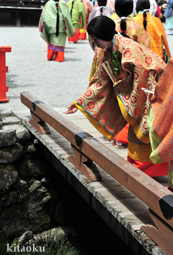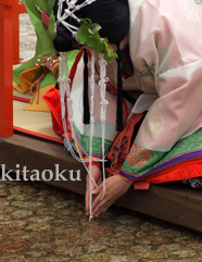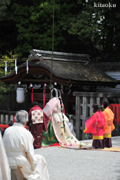 御禊神事は、十五日の葵祭の行粧に参加する斉王代以下四十数名の女人列が