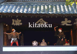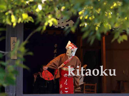 京都嵯峨清凉寺(嵯峨釈迦堂) で四月上旬の土、日曜に上演される狂言 |