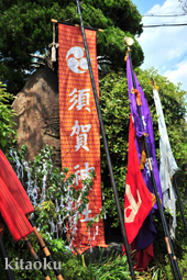 神(くしなだひめのみこと)を祀り、縁結び・学問・諸事必勝・病気平癒の神様として親しまれている。境内にある交通神社は、須賀神社に合祀されていた八衞比古(やちまたひこのみこと)・八衞比賣神を分祀し、昭和39年に建立された。八衞比古・八衞比賣