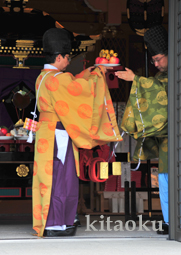 ささげのつる葉に多くのさや豆がつくように氏子の繁栄を祝う。
