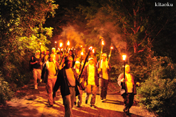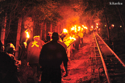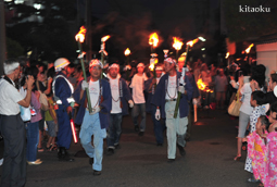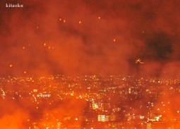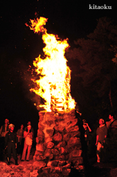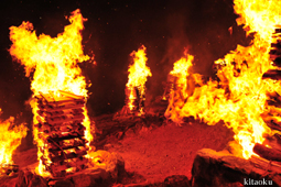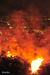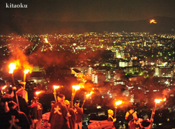 8月16日の五山送り火。送り火としては東山如意ケ嶽の「大文字」がもっともよく知られているが、ほかに金閣寺大北山(大文字山) の「左大文字」、松ヶ崎西山(万灯籠山)・東山(大黒天山)の「妙法」、西賀茂船山の「船形」、及び嵯峨曼荼羅山の「鳥居形」がある。これらが、同夜次々と点火され晩夏の夜空を華麗にいろどる、