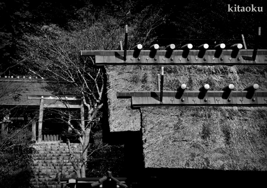 見上げると神明造の大屋根にも日が当たって装飾金具が輝いていた。