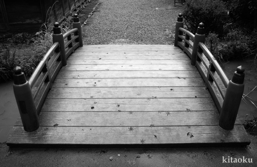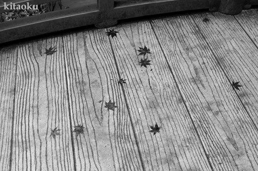 内宮へ行く橋に前夜の雨で散った落ち葉が…。