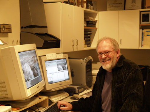 氏の作品は従来のシルバープリント(銀塩)で制作されており、見学した暗室は広さといい、引き伸ばし機などの機材といい素晴らしい環境です。でも、氏に言わせれば「写真家にとって最も大切な設備はゴミ箱である。納得できないプリントはどんどん捨て、最後に仕上がった<最高のプリント>だけを人に見せるべきだ」とのこと。この妥協を許さない厳しい姿勢がアンセルに負けない美しいモノクローム(黒白)プリントを生み出すのでしょう。