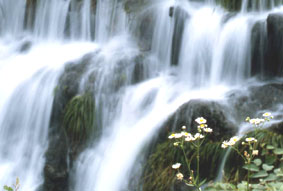 上の写真は京都市左京区の鞍馬川である。鞍馬寺から奥へ十分ほど歩いたところにこの小さな滝がある。シャッタースピードを遅くして、水の色をより白くすることで「清らかな流れ」を表現してみた。そして流れ落ちる水の音が感じられるようにカメラアングルを工夫した。