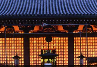 上の写真は京都市中京区にある壬生寺で撮影した。お盆の間、万燈供養会が営まれ、奉納された灯ろうがすべて点灯される。数え切れないほどの灯ろうに照らし出された本堂は荘厳である。
