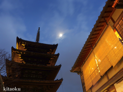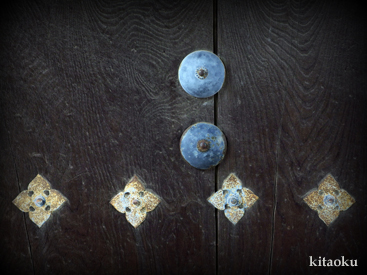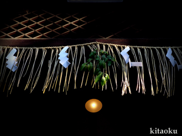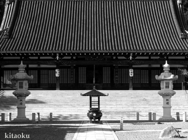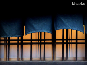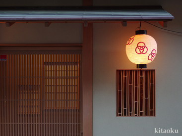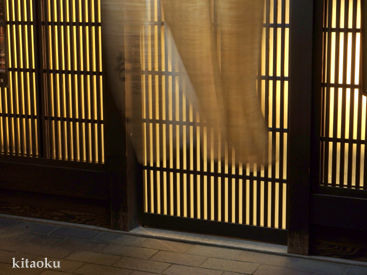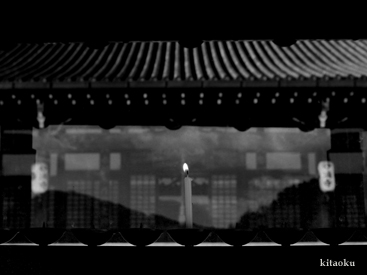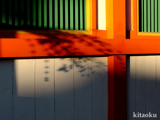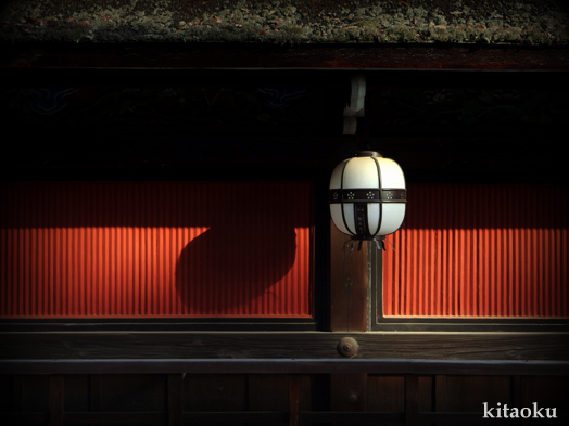北野天満宮のつり灯籠を少しアンダーに撮影。斜光線で影が力強い印象となった。