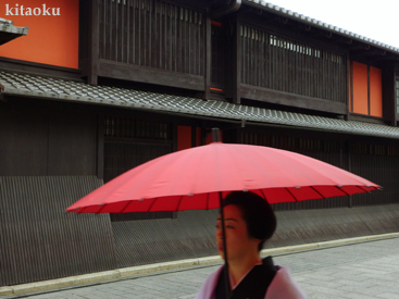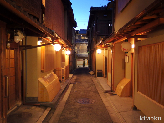 向い側のお茶屋も写し込むと道路を含むこの一帯がいかに綺麗に保存されているかがわかる。