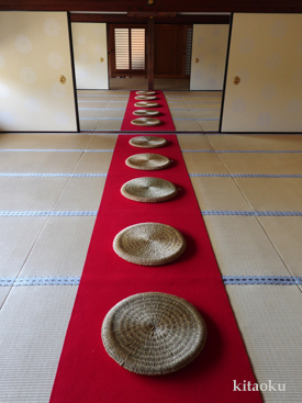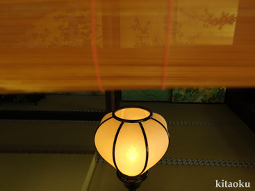 大書院内の御簾と灯り。これも両手を上げて高い位置から撮影すると今までにない写真ができた。