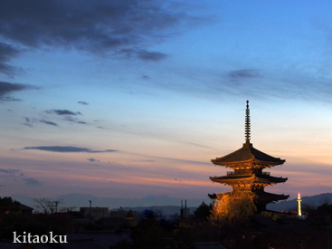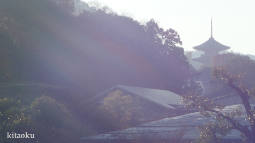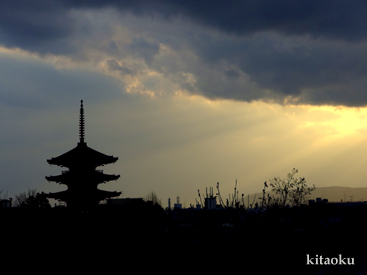 塔の写真は日中は平凡になるので夕刻に出直す。雲間から光がもれて朝とは逆方向に光線が射す。