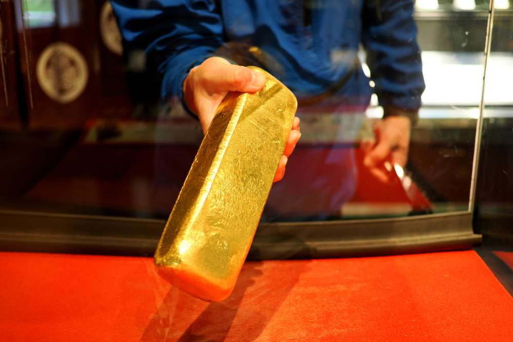この体験は片手が入る大きさの穴から重さ12.5キロの金塊(時価約1億5000万円)を30秒以内に取り出すことができれば記念に金箔カードがもらえるという人気のコーナーです。