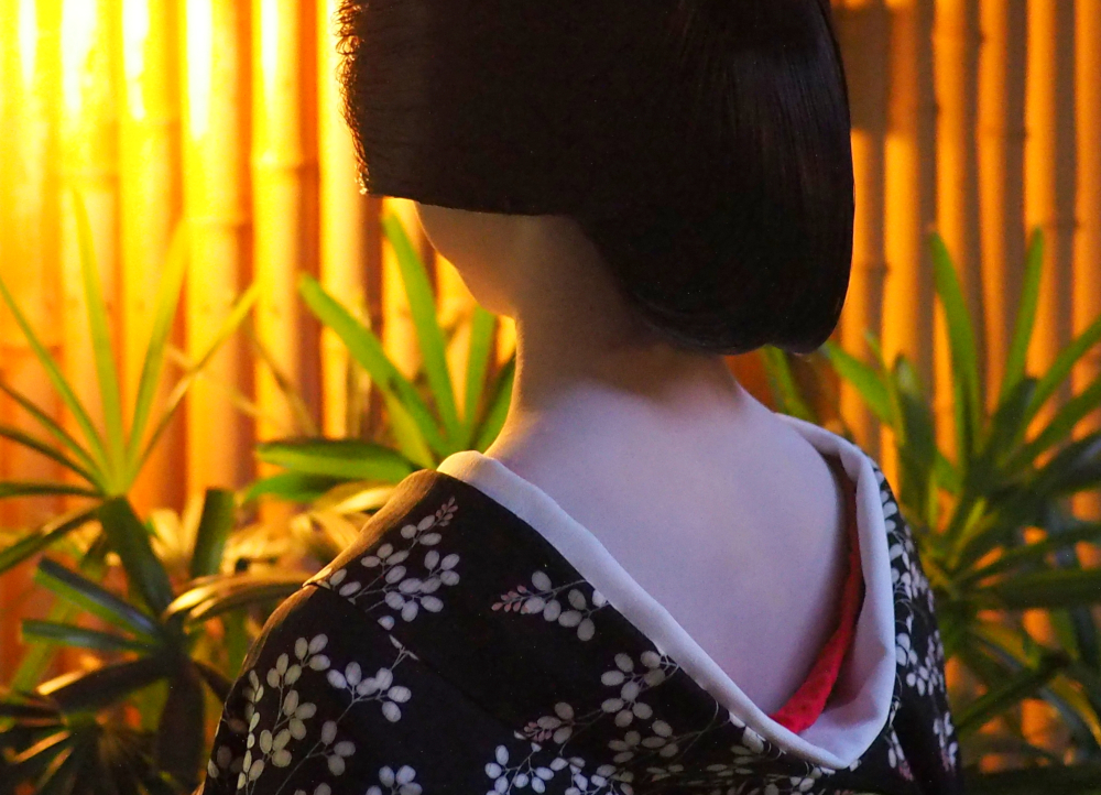 後方の灯りを生かしながら市笑さんの艶めかしい襟足を撮影。