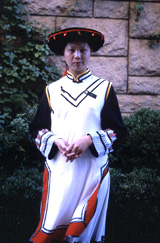 さて翌朝、朝食を終えロビー に下りると約束通りガイド兼ドライバーのK氏が私を待っていました。この人は日本語が出来てまじめそうなので安心です。一緒に出ようとした時、玄関ドアを開けてくれたのがこの女性。民族衣装で迎えてくれるのがうれしいですねぇ。