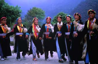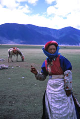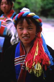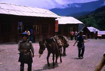 ナシ族は明日行く予定の麗江に住む民族で一日早く見てしまった感じです。でもこの辺りからナシ族の区域だと聞き、そうだったかとムリに納得しながら下山したのですがミニバスの待つ停留所の光景を見るとホッとしました。ここはまだ西藏チベット(?)だったのです…。