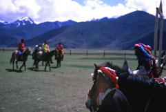 これがナパ海とチベット族の遊牧民。6月〜8月だともっと草原が青くてきれいでしょう。間近に迫ったお祭りのため、青年たちが乗馬訓練をしていました。