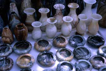 土産物屋で販売している大理石製品。大理石の産地だけに種類も豊富です。