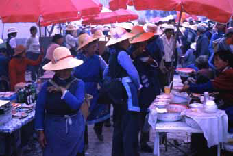 すぐそばで開かれていた青空市場です。白族の人たちですが赤と白を着るのは若い女性で40〜50歳くらいからは藍色を着ます。もし日本でそんな制度にしようとしたら猛反対にあうでしょうねェ…。