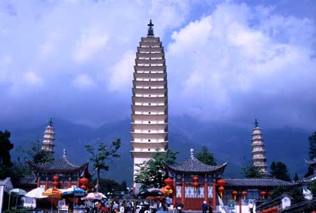 翌日昼前までベッドで横になっていましたがこのままでは日本へ帰れない、もっと写さねば…と元気が出ないままホテルのタクシーに乗って出かけました。有名な三塔を正面から撮影しておかなければ、とカメラを構えたところへテレビのインタビューを受けたのです。日本から来た、と英語で答えたらアナウンサーがびっくり仰天。あわてて英語で「大理はどうですか、どこを回りましたか?」と聞いてきましたが彼の英語も私並みかそれ以下だったのでその夜、彼も消化不良で寝込んだかもしれません。