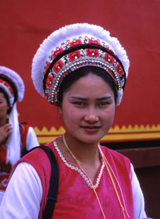 そこへ白族のガイドさんが通りかけたので1枚パチリ。白族は美人が多いといわれています。 |
