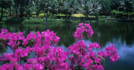 これぞ「熱帯」植物園。ヤシの木と花の競演です。広くって美しく、ピクニックにはもってこいの所でした。