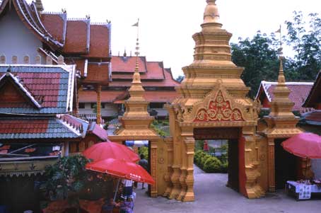 水かけ祭も終り、静かになってから公園内にある総佛寺を訪ねました。タイ様式の寺院建築を見るとバンコクへ来たみたいですね。