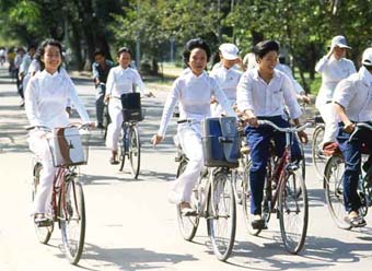 校門までやって来た。女生徒の白いアオザイが眩しい。