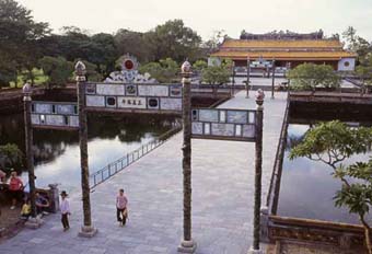 フエの空港から市街まで車で20分で到着。フエはヴェトナム最後の王朝、阮(グエン)朝の都が置かれた町で、フォーン川のほとりに王宮、寺院、皇帝廟と風格ある建築物が点在する。これら古の建造物群は1993年にヴェトナム初の世界遺産に認定された。フエはヴェトナム人の心のふるさとなのだ。